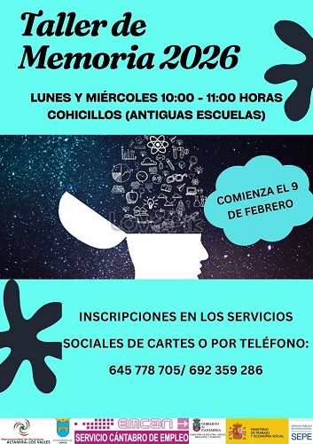 El próximo lunes 9 de febrero darán comienzo nuevamente los Talleres de Memoria organizados por La Mancomunidad Altamira – Los Valles, en colaboración con el Ayuntamiento de Cartes y el...